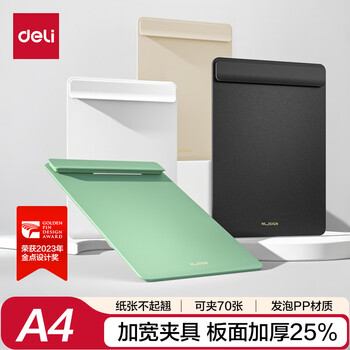 得力(deli)A4板夹文件夹板加宽夹具 写字板夹书写垫板学生资料收纳办公报告夹 2023金点奖办公用品 灰 NS501   收藏