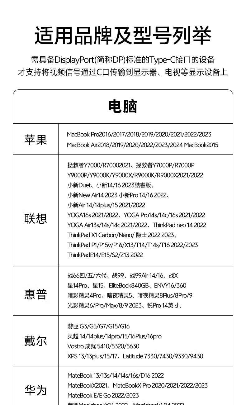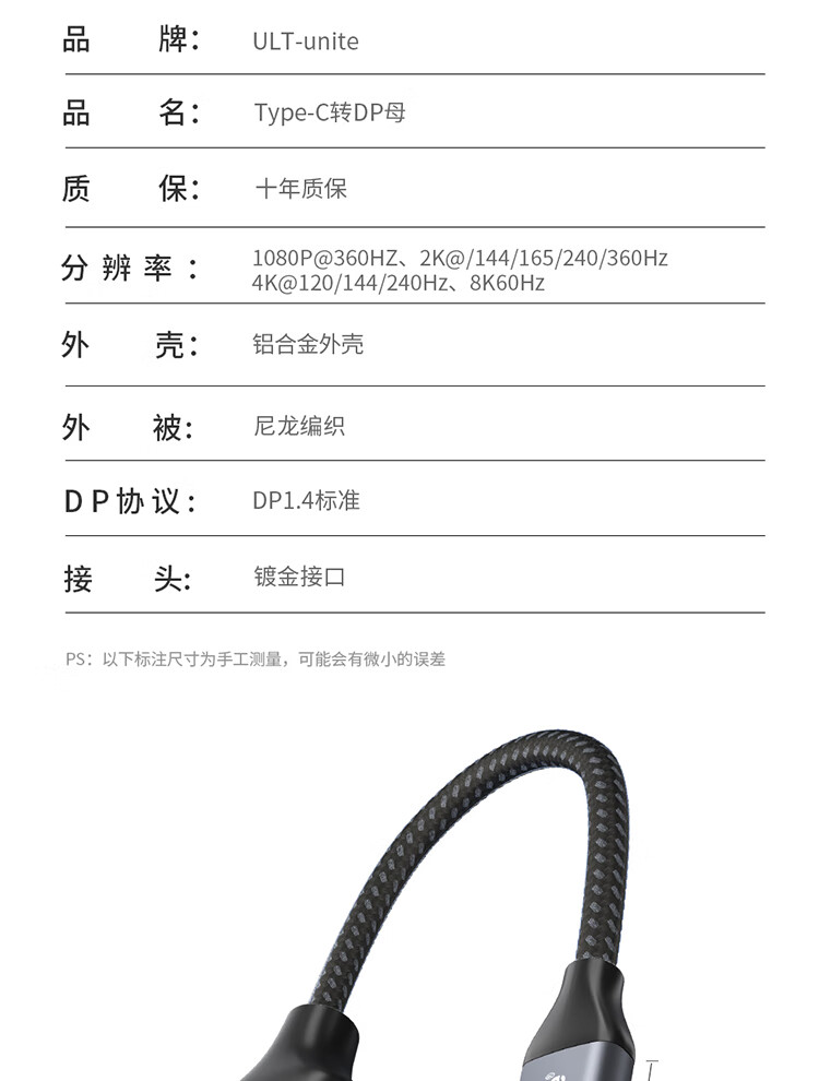 | 接口 | Type-c/DP母 |