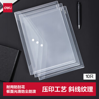 得力(deli)10只A4透明文件袋 斜纹印花按扣档案袋资料袋票据文件保护 学生试卷收纳袋 学习用品 8308AS-10   收藏