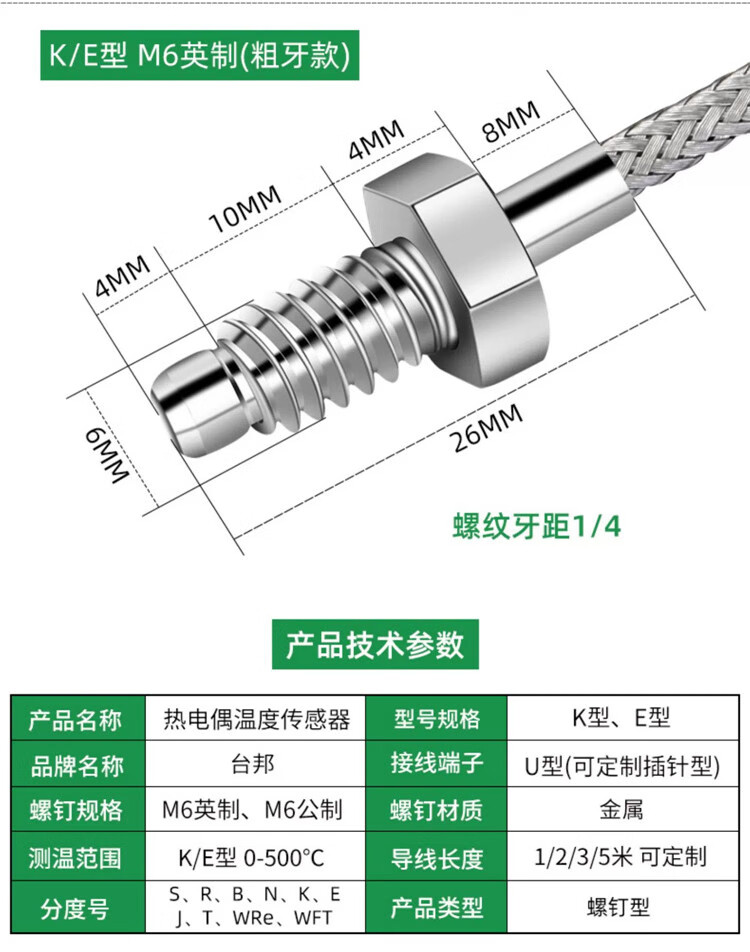 | 规格型号(MPN) | E型 M6 公制(细牙) 2米线 |