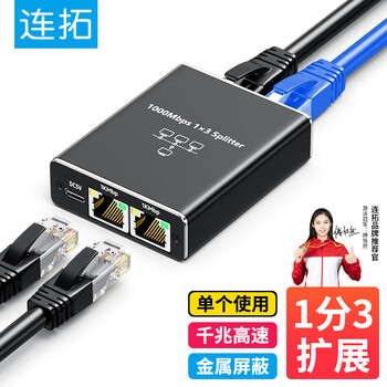 • 连拓 网线分线器 千兆网络一分三同时上网转换器转接头宽带RJ45网口电脑笔记本路由器机顶盒分线器