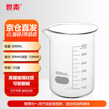 • 世泰 玻璃烧杯低型带刻度烧杯透明量杯加厚高硼硅耐高温实验室器材小烧杯量杯化学烧杯京仓 【600ml】