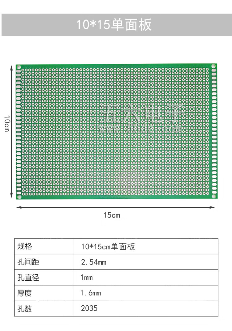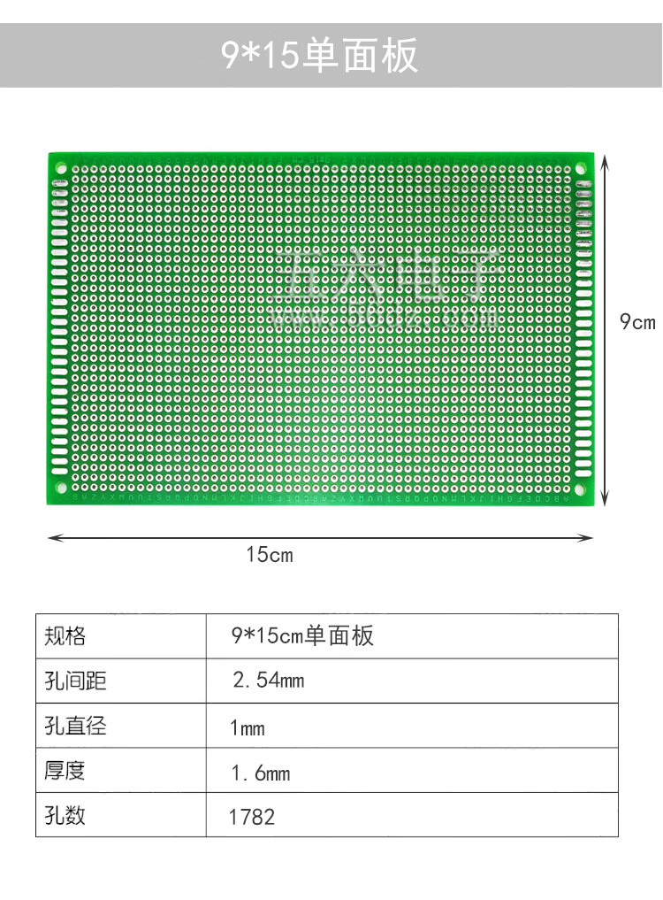 • 伍陆电子 万能板万用板电路板多孔单面玻纤喷锡绿油PCB实验洞洞板焊接 13*25cm 【单面玻纤板】
