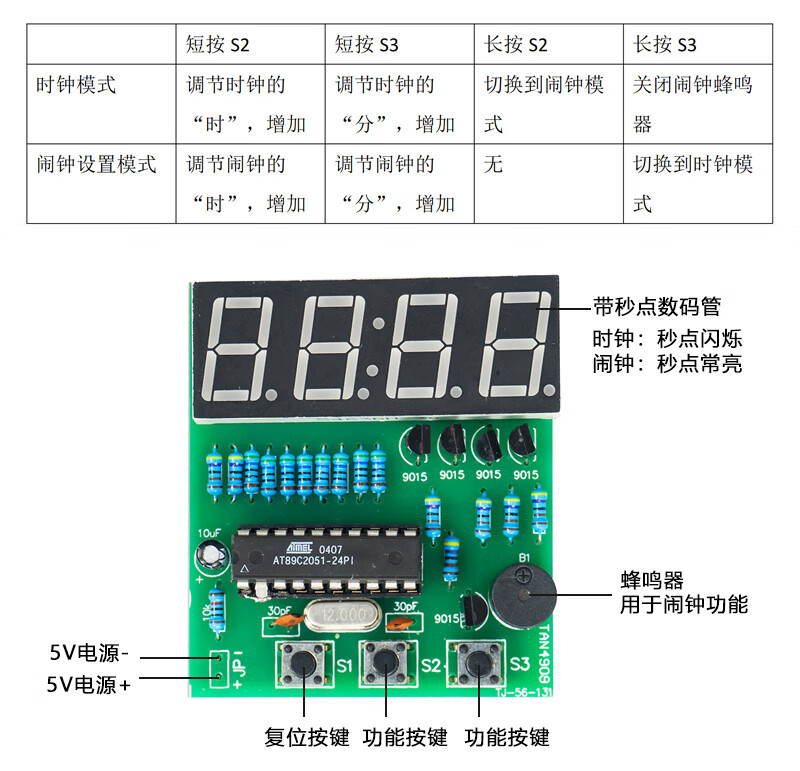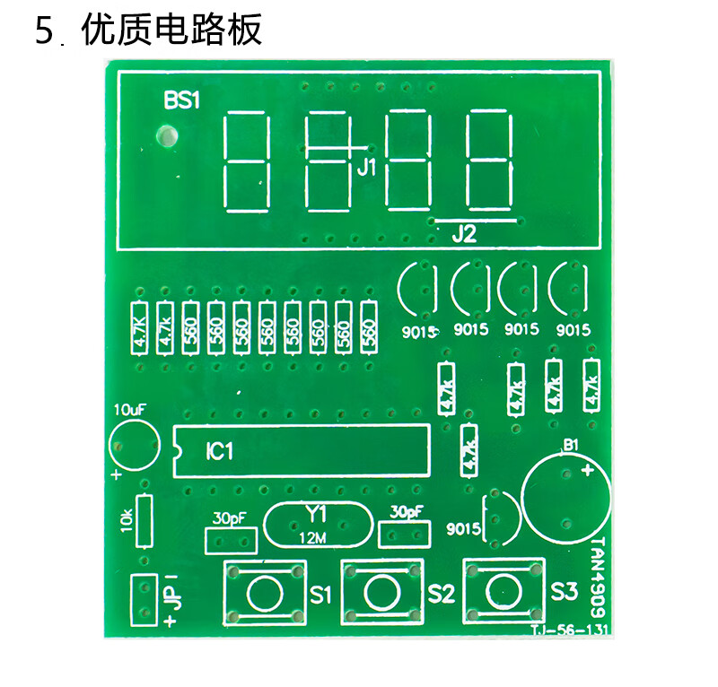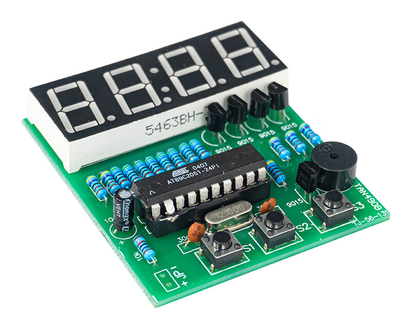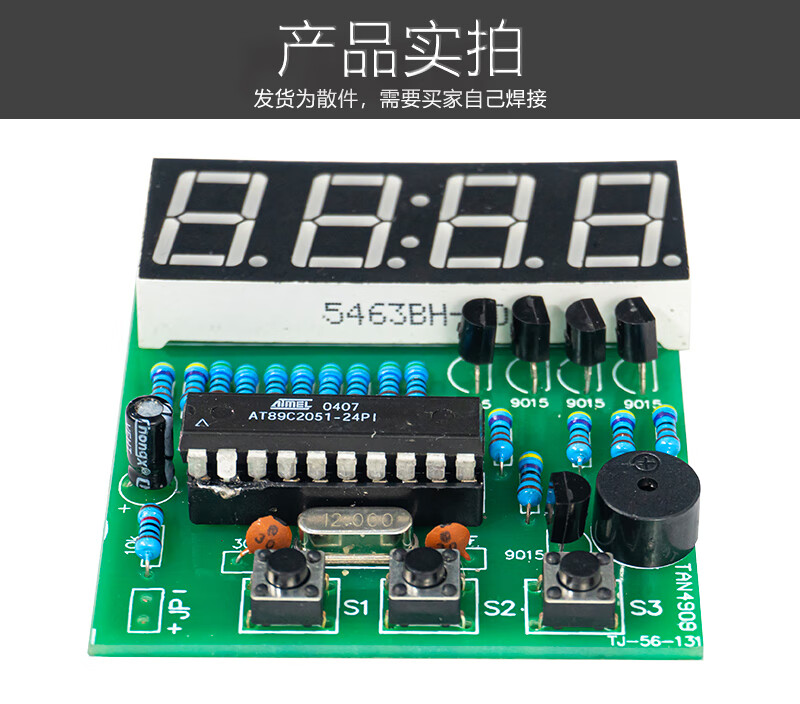 • 伍陆电子 4位数字电子钟DIY套件单片机时钟闹钟制作焊接练习电路TJ-56-131 套件+3节五号电池盒