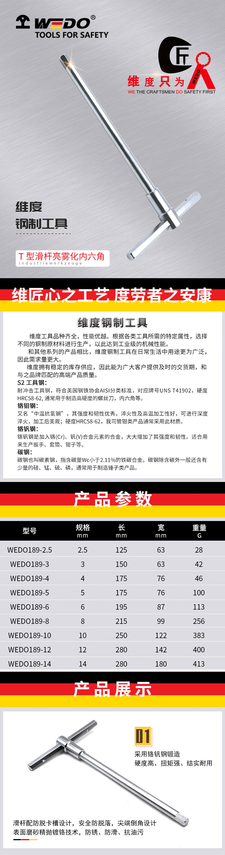 • 维度WEDOT型内六角扳手六棱扳手可滑动德标5mmWEDO189-5/把