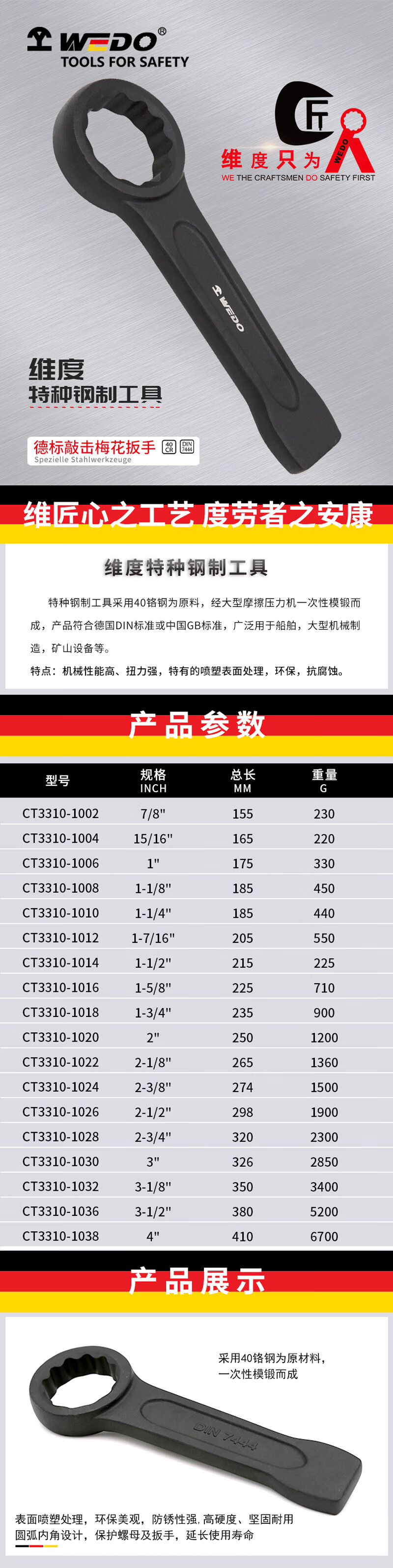 维度 德标敲击梅花扳手 1" CT3310-1006   收藏