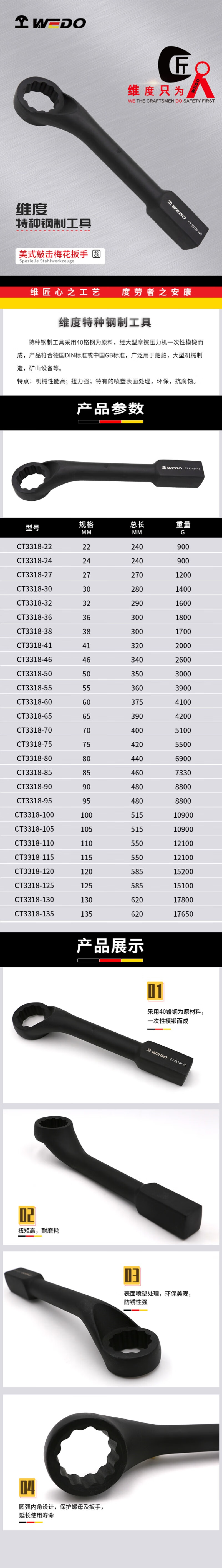 维度 美式敲击梅花扳手 30mm CT3318-30   收藏
