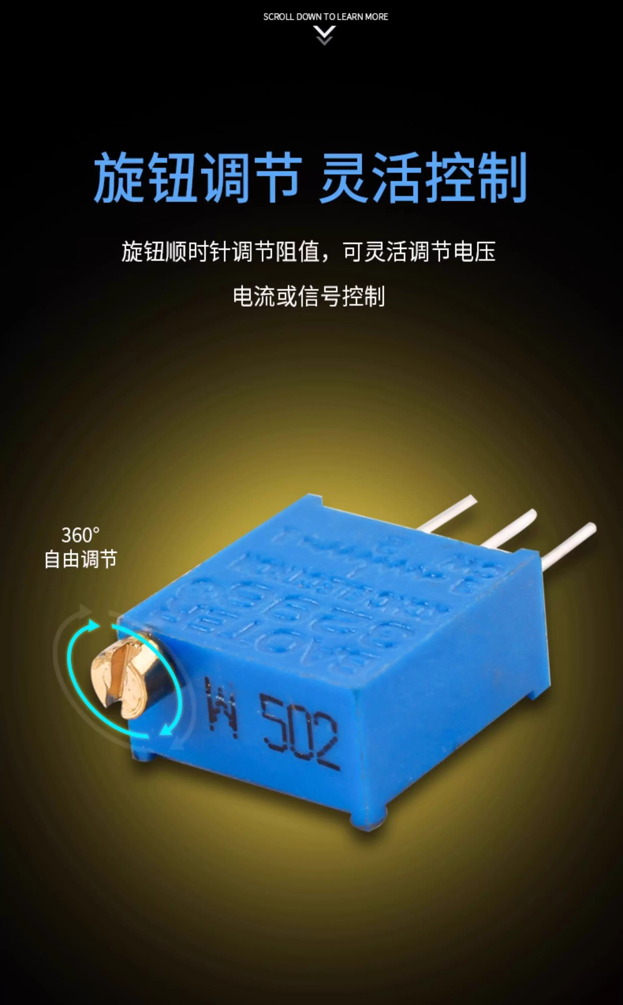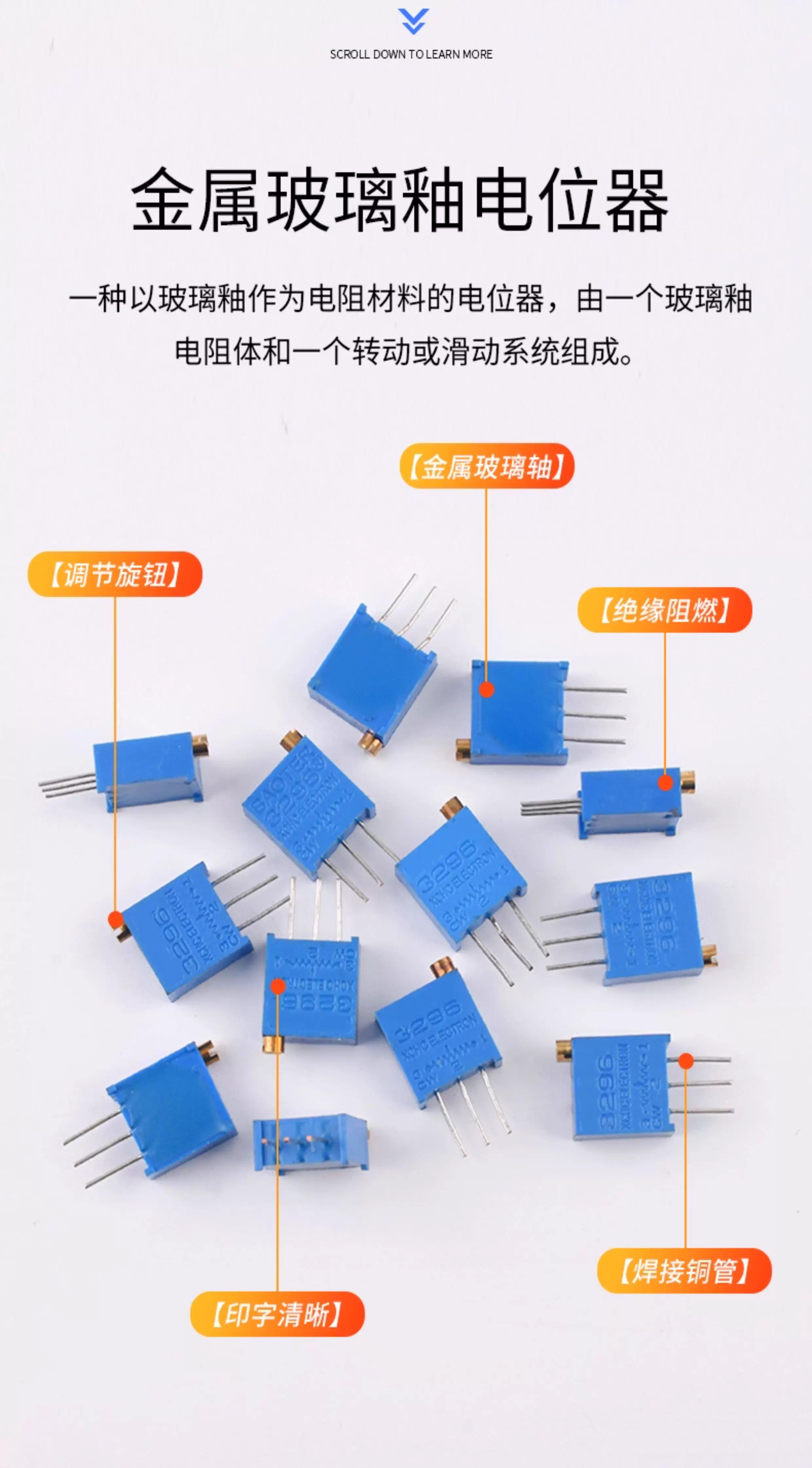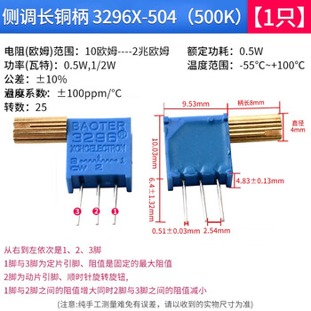ZAVE 3296W可调电阻电位器 侧调长铜柄 3296X-504(500K)   收藏