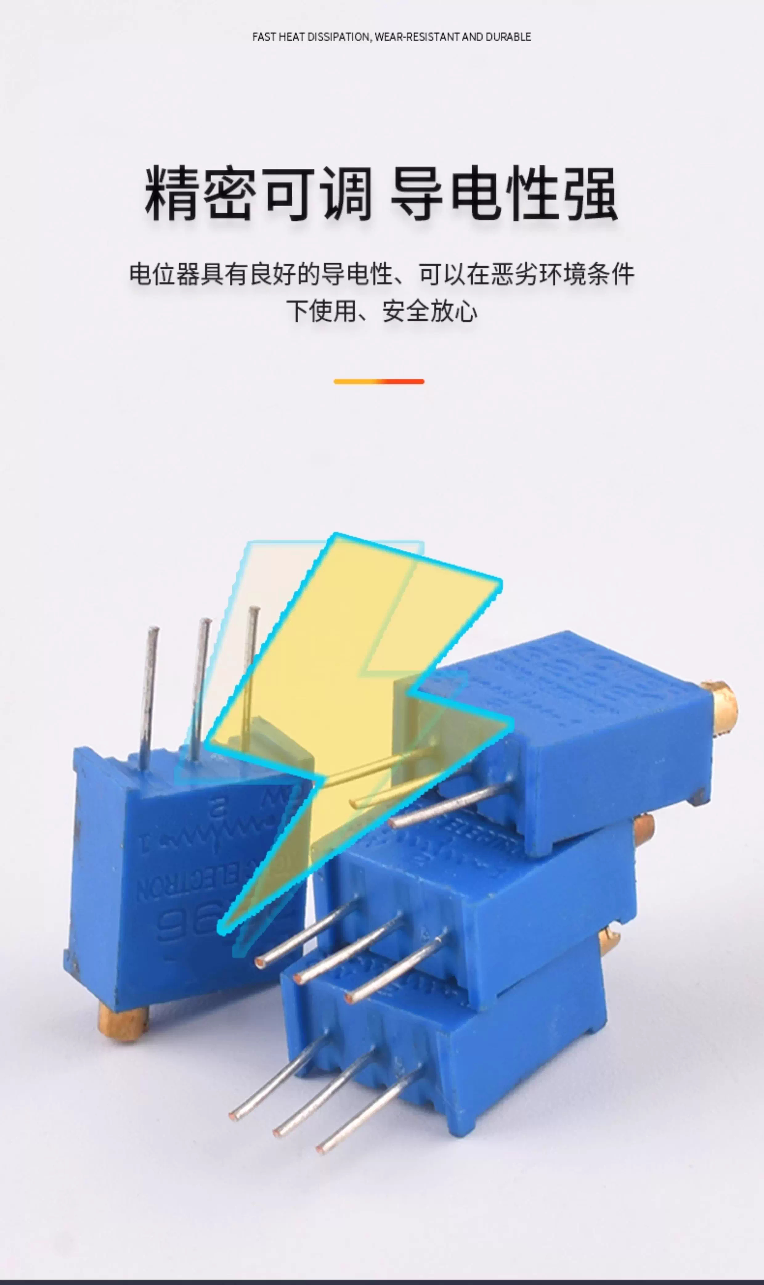 • ZAVE 3296W可调电阻电位器 侧调长铜柄 3296X-504(500K)