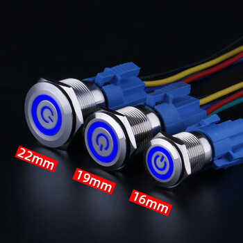• 汇鑫茂 平面环形符号电源灯金属按钮防水开关 平头环形电源灯 蓝光+带插座;220V;自复【松手弹回】;22mm【3个