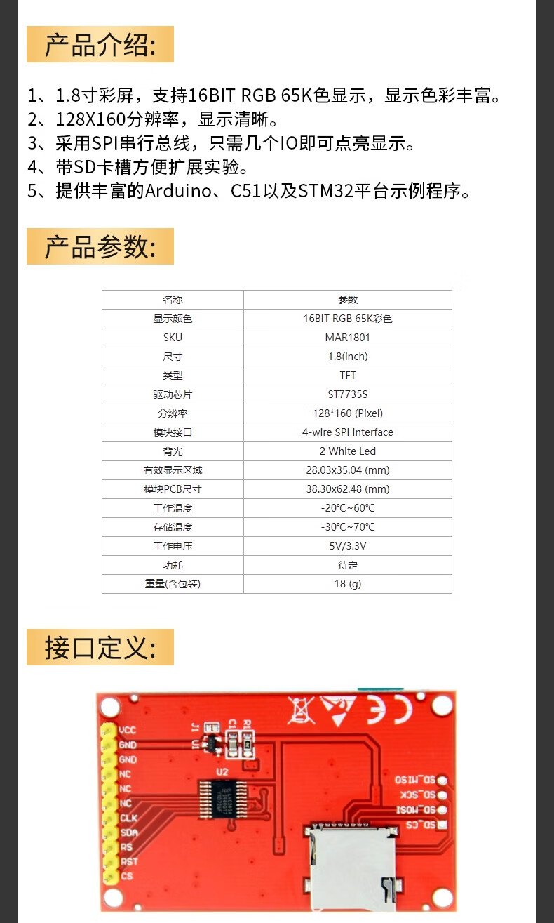 | 规格型号(MPN) | 1.8寸无触摸(1只) |