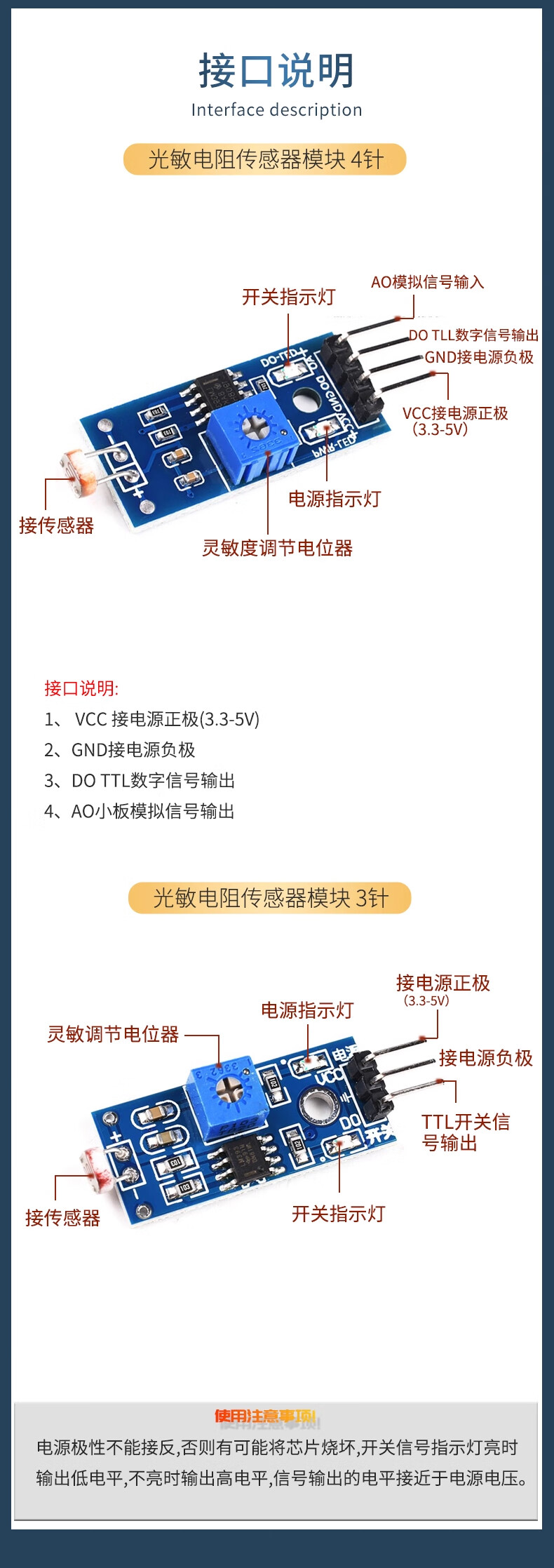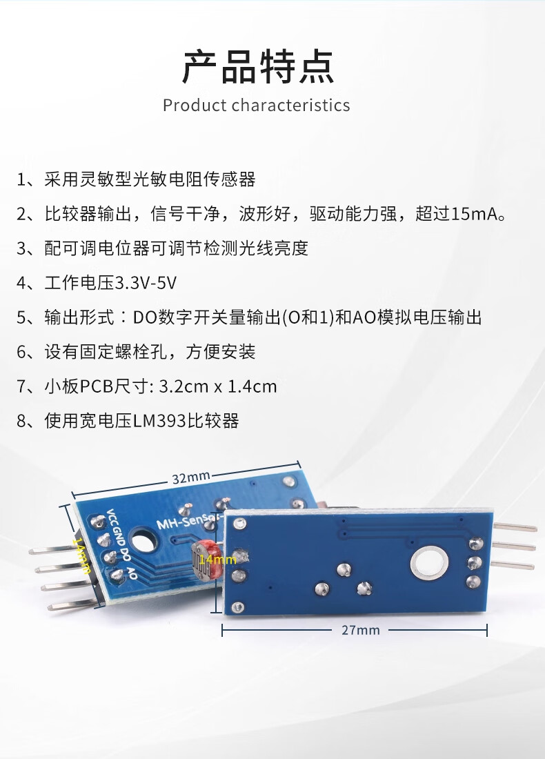 | 规格型号(MPN) | 光敏电阻模块 3针(5只) |