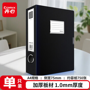 • 齐心(COMIX)75mm档案盒 A4加厚型文件盒 粘扣资料盒 黑色 办公文具