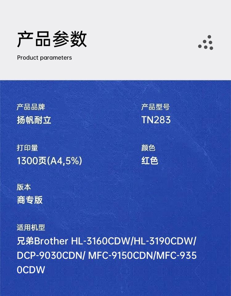 | 适用机型 | 兄弟Brother HL-3160CDW/HL-3190CDW/DCP-9030CDN/ MFC-9150CDN/MFC-9350CDW |
