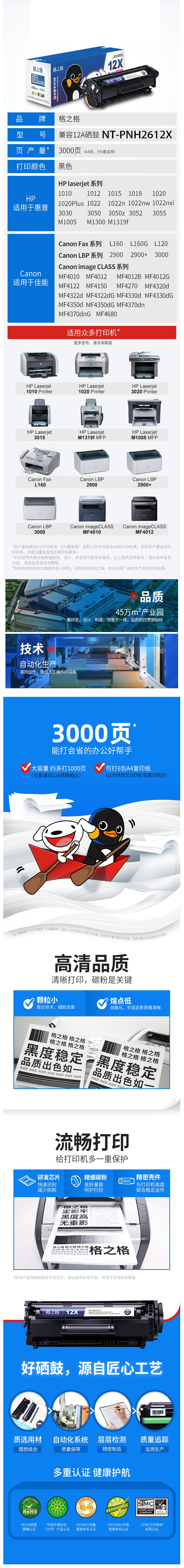 | 适用机型 | 惠普1020 1005 1010 3050 佳能 2900 |