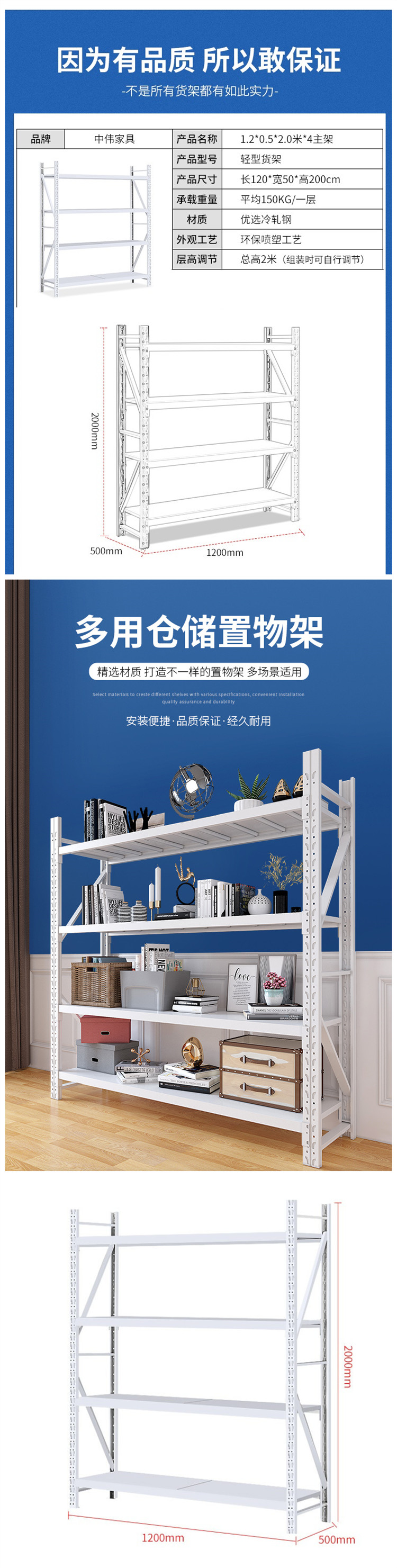 | 承载重量(kg) | 平均150kg/层 |