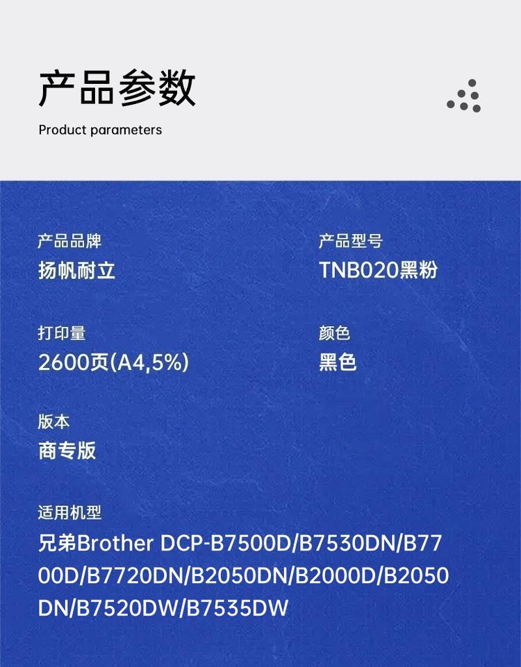 | 适用机型 | 兄弟Brother DCP-B7500D/B7530DN/B7700D/B7720DN/B2050DN/B2000D/B2050DN/B7520DW/B7535DW |