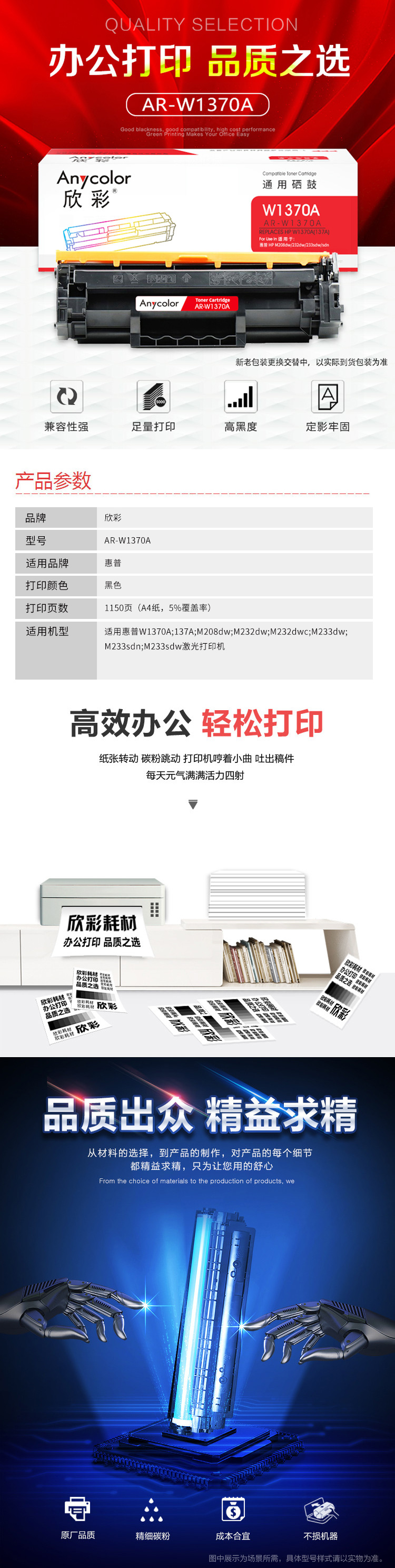 | 适用机型 | 惠普W1370A;137A;M208dw;M232dw;M232dwc;M233dw;M233sdn;M233sdw激光打印机 |