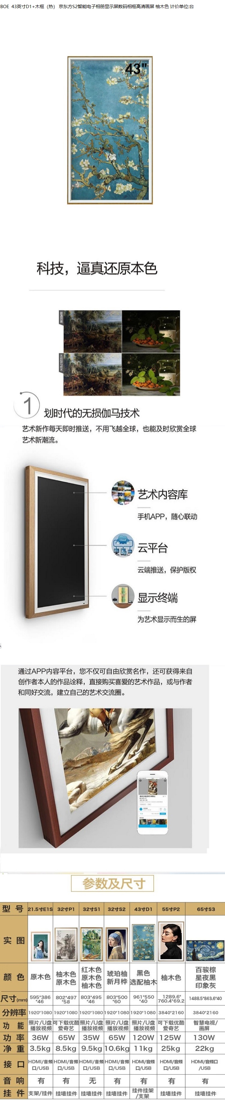 | 型号 | 43英寸D1+木框(热) |