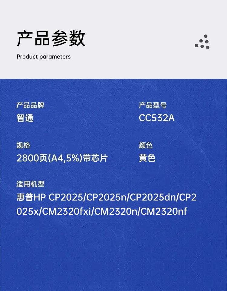 | 适用机型 | 惠普HP CP2025/CP2025n/CP2025dn/CP2025x/CM2320fxi/CM2320n/CM2320nf |