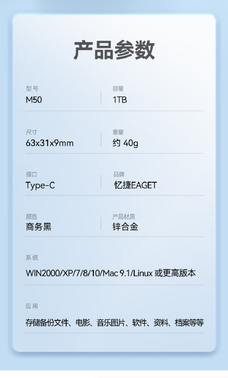 | 品牌 | 忆捷(EAGET) |