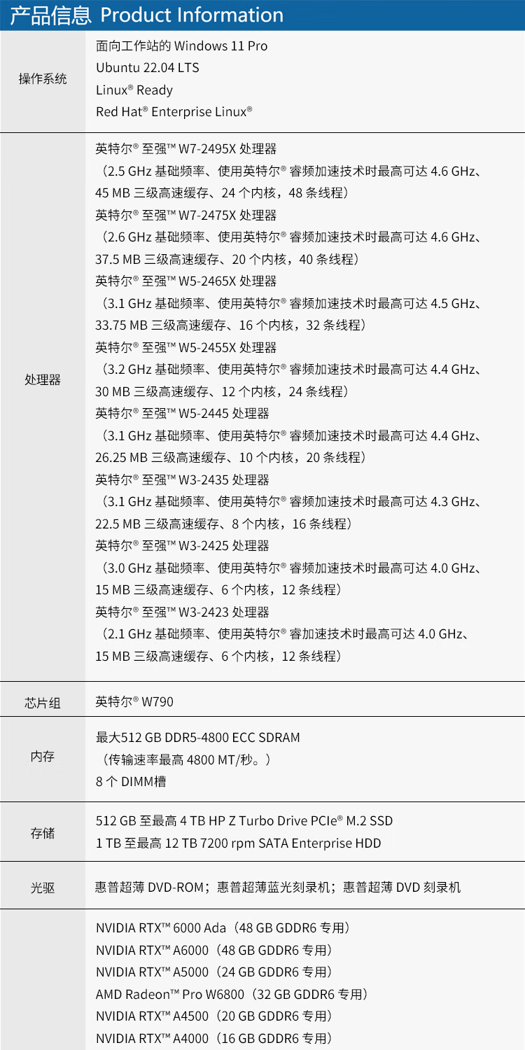 | 处理器 | 至强W系列 |