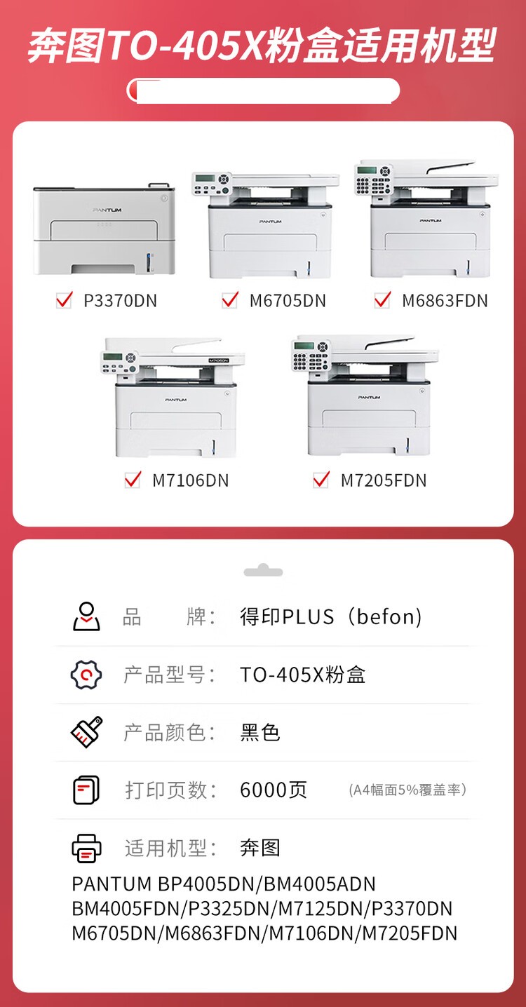 | 适用机型 | M6705DN;M7106DN;P3370DN;M6863FDN;M7205FDN;M7205 |