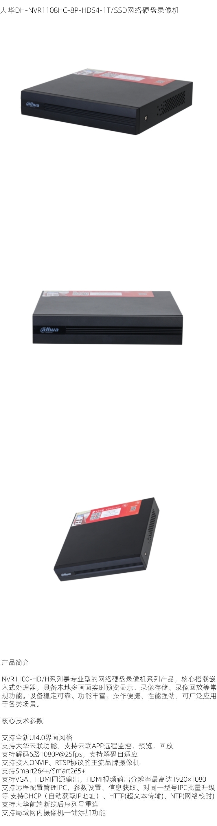 | 型号 | DH-NVR1108HC-8P-HDS4-1T/SSD |