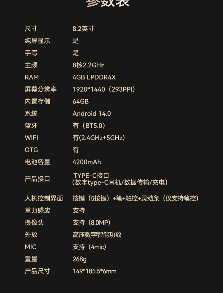 | 屏幕尺寸 | 8.2英寸 |
