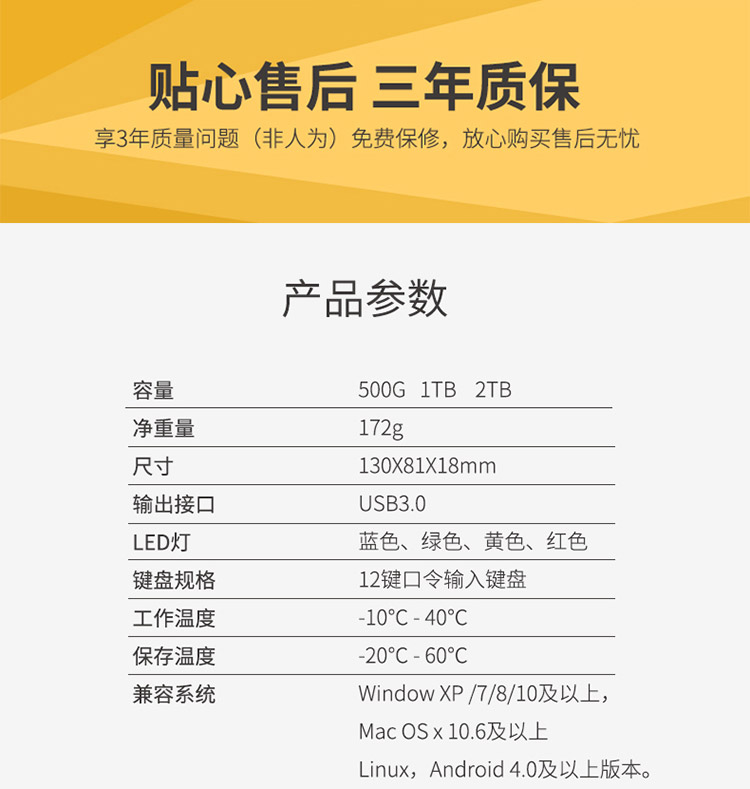 | 质保期 | 3年 |