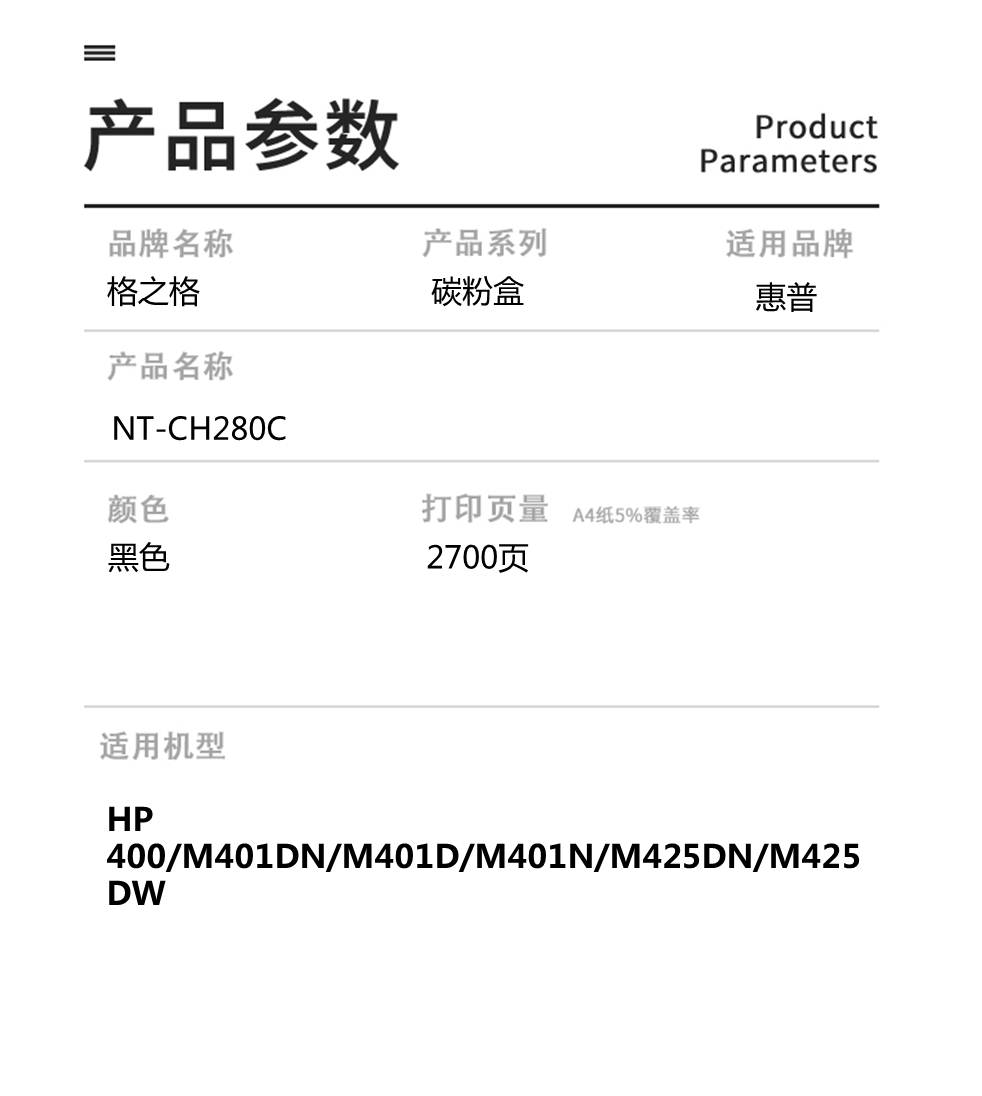 | 适用机型 | HP 400 M401a/n/d/dn/M425dn/M425dw |