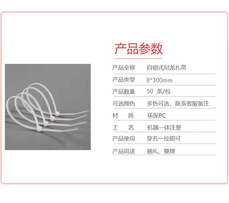 | 其他特性 | 尼龙新料,自锁式固定设计,含止退功能 |
