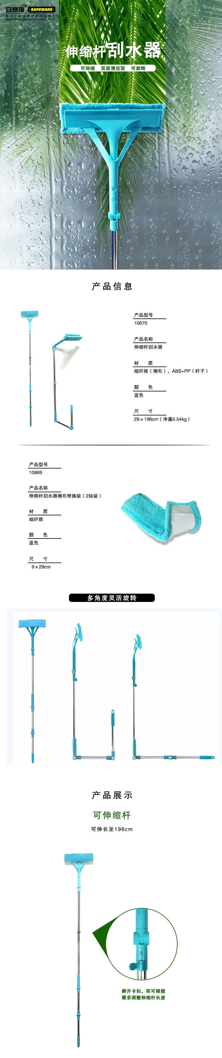 • 安赛瑞 10669 商用擦窗器擦布替换装(2块装) 9×29cm按包销售