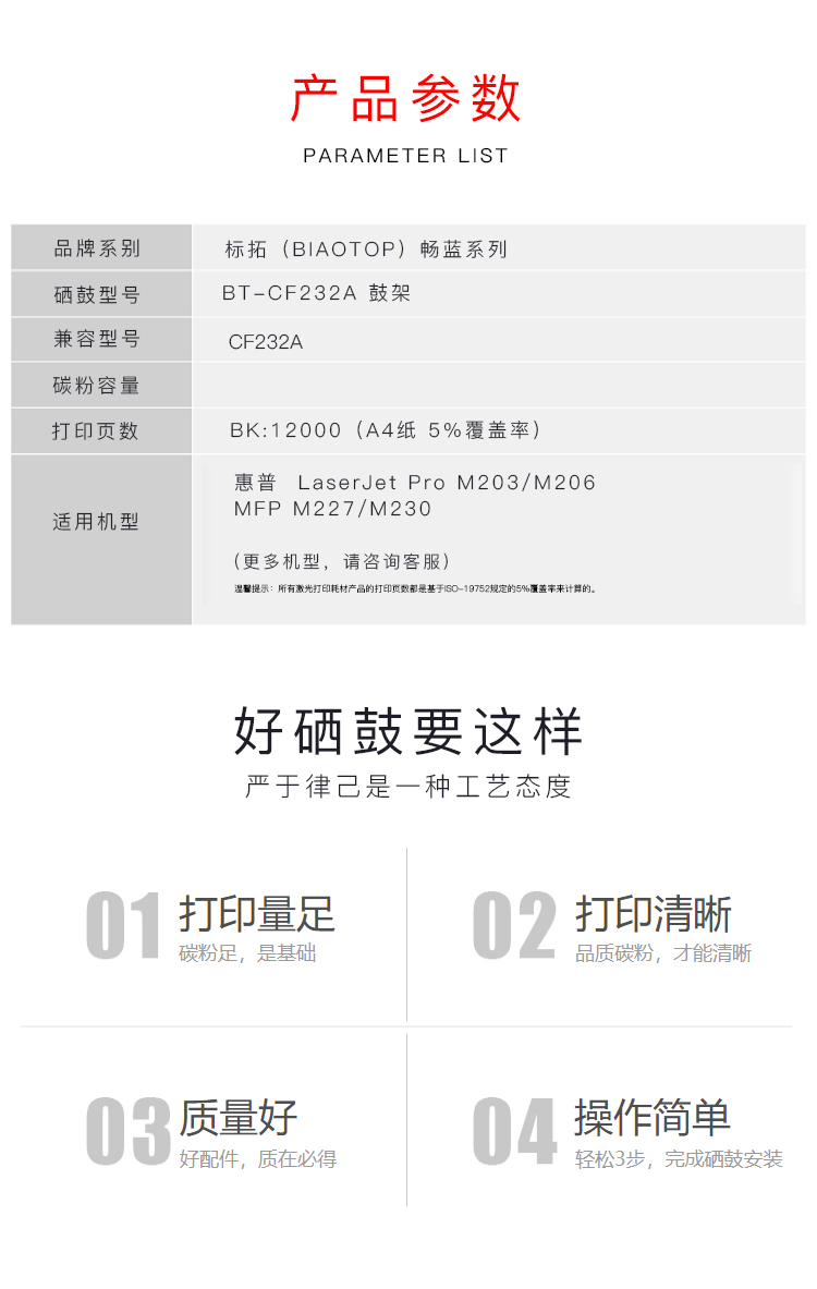 | 适用机型 | 适用惠普HP LaserJet Pro M203/M206/M227/M230打印机 |