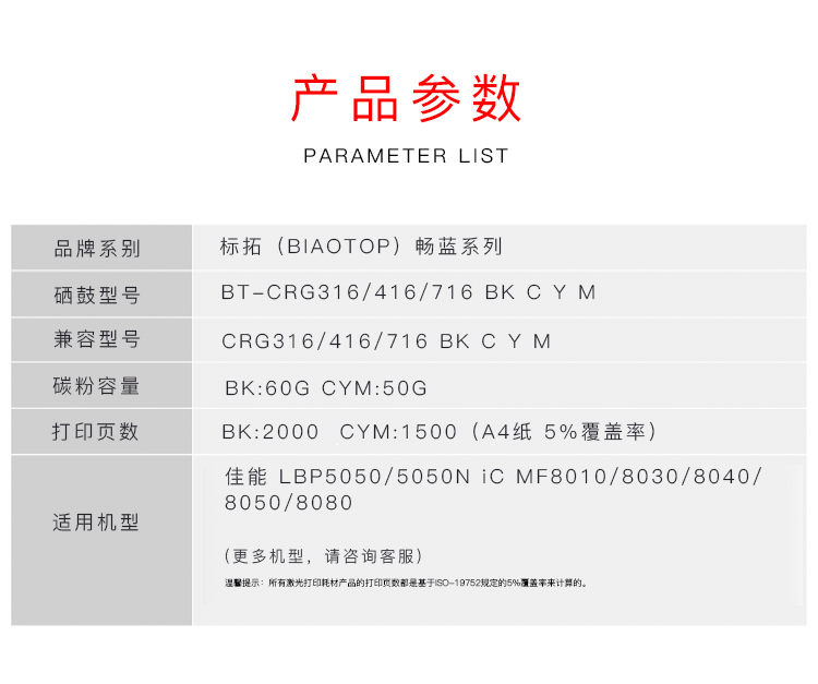 | 适用机型 | 适用佳能5050/5050N/iC MF8010/8030/8040/8050/8080打印机 |