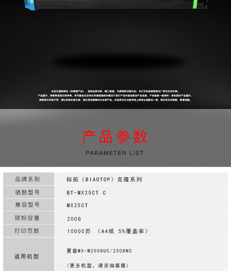 | 适用机型 | 适用夏普MX-M2008UC/2508NC复印机 |
