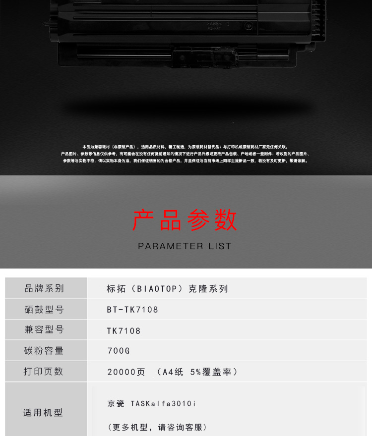 | 适用机型 | 适用京瓷 TASKalfa3010i打印机 |