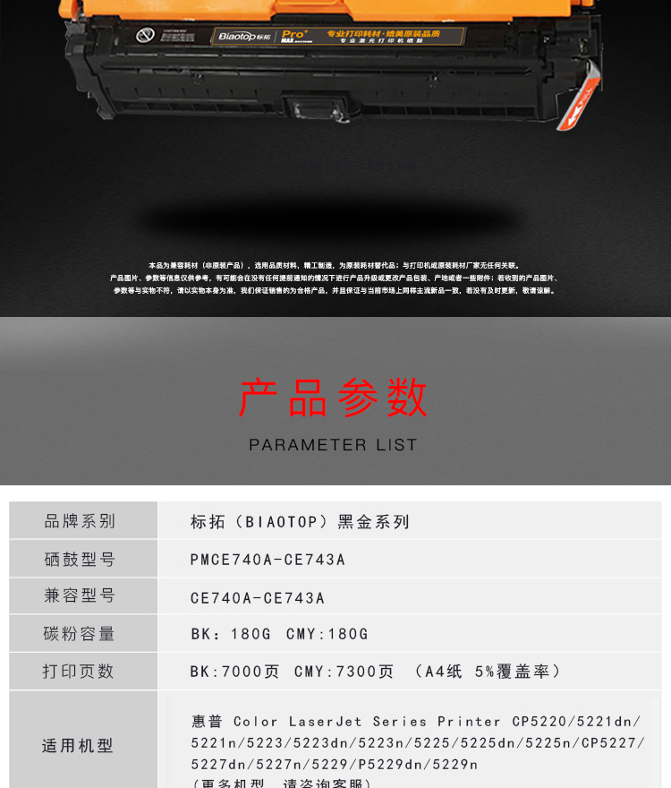 | 适用机型 | 适用惠普Color LaserJet CP5220/5221/5223/5225/CP5227/5229打印机 |