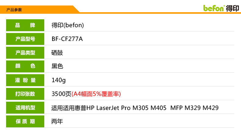 | 打印量 | 3500页 (A4幅面 5%覆盖率) |