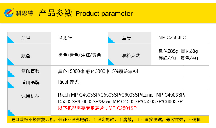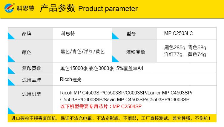 | 适用机型 | C2003SP/C2011SP/2503SP/Lanier MP C2003SP/2503SP |
