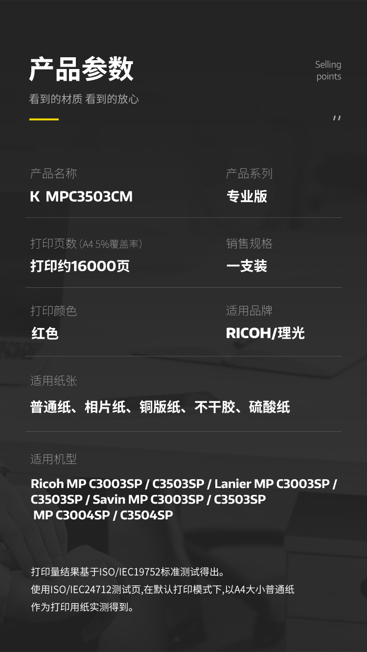 | 适用机型 | Ricoh MP C3003SP/C3503SP/Lanier MP C3003SP/C3503SP/Savin MP C3003SP/C3503SP MP C3004SP/C3504SP |