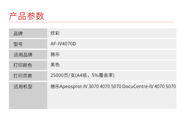| 适用机型 | 适用施乐Apeosprot-IV 3070 4070 5070 DocuCentre-IV 4070 5070 |