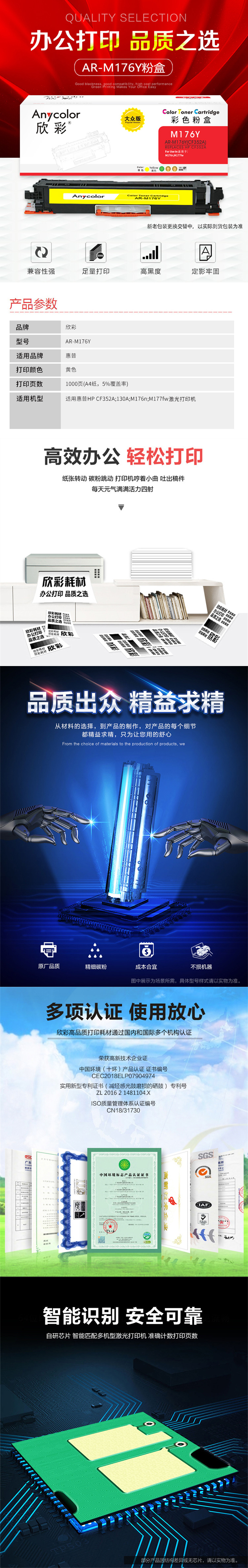 | 适用机型 | 适用惠普HP CF352A 130A M176n M177fw激光打印机 |
