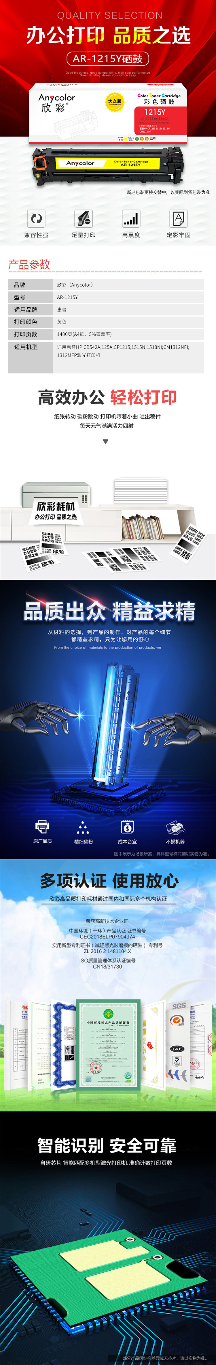 | 适用机型 | 适用惠普HP CB542A 125A CP1215 1515N 1518NI CM1312NFI 1312MFP激光打印机 |