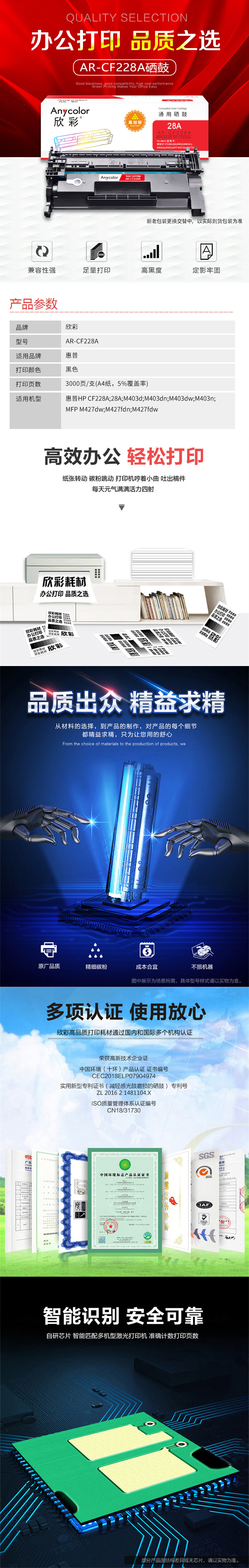 | 适用机型 | 适用惠普HP CF228A 28A M403d M403dn M403dw M403n MFP M427dw M427fdn M427fdw |
