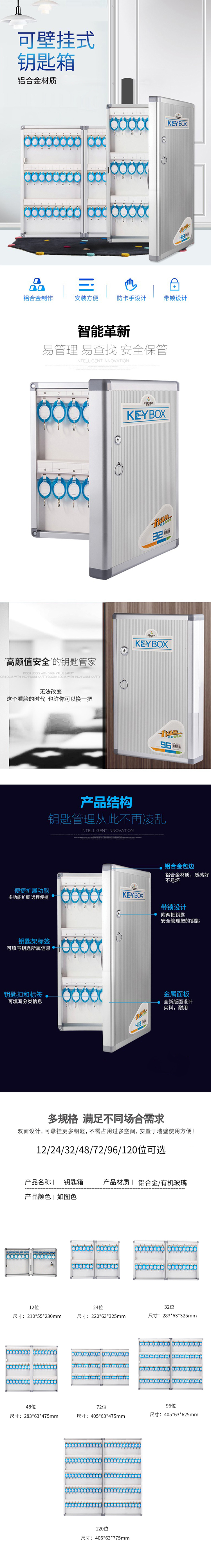 企诺 QNGhA3-32 钥匙柜壁挂式锁匙盒收纳钥匙箱32位 283*63*325mm按个销售