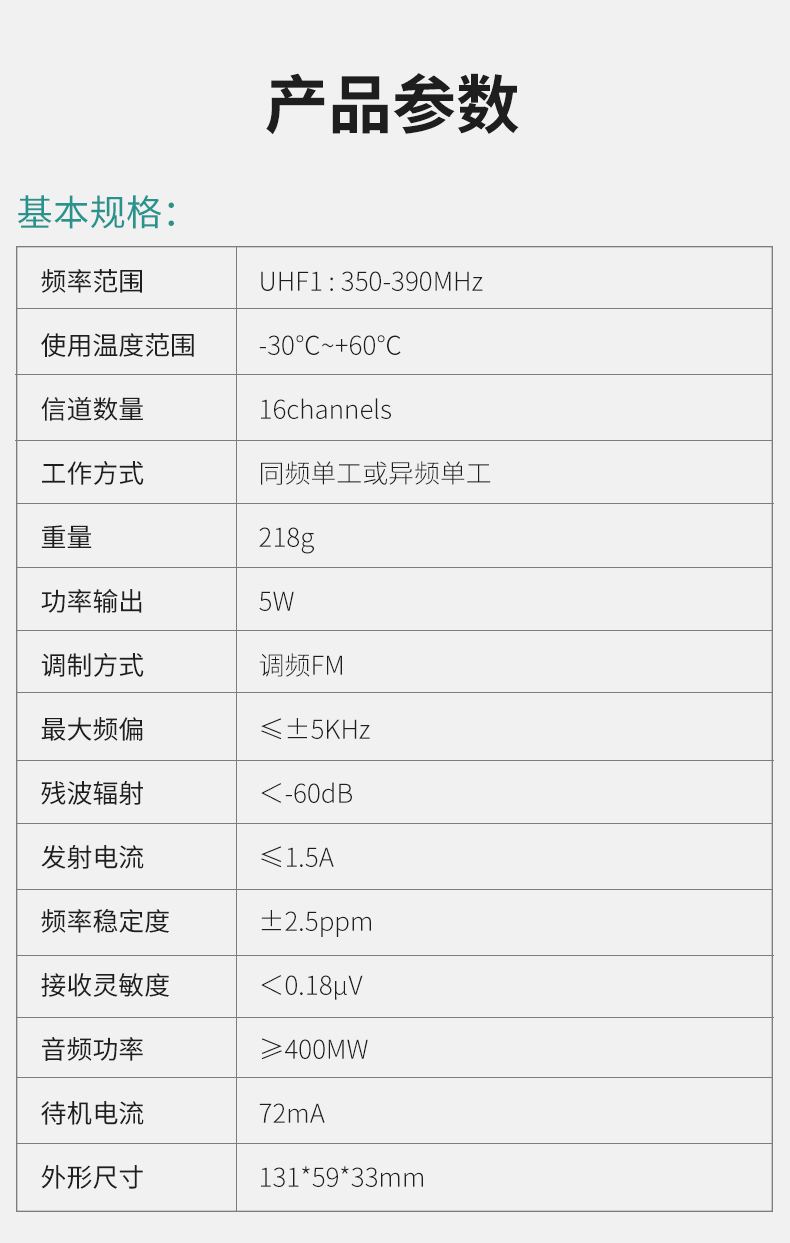 | 包装清单 | 对讲机*1,说明书*1,充电器*1 |