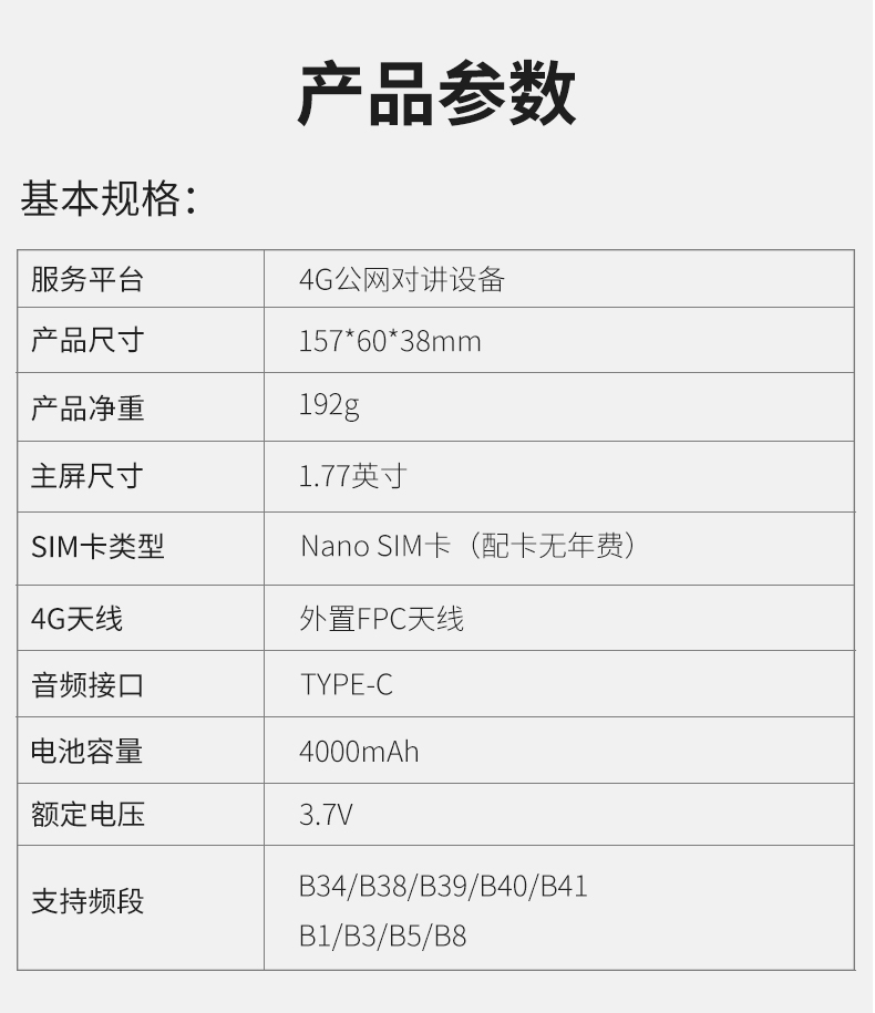 | 包装清单 | 对讲机*1,说明书*1,充电器*1 |