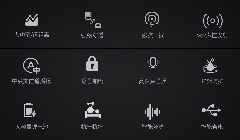 | 包装清单 | 对讲机*1,说明书*1,充电器*1 |