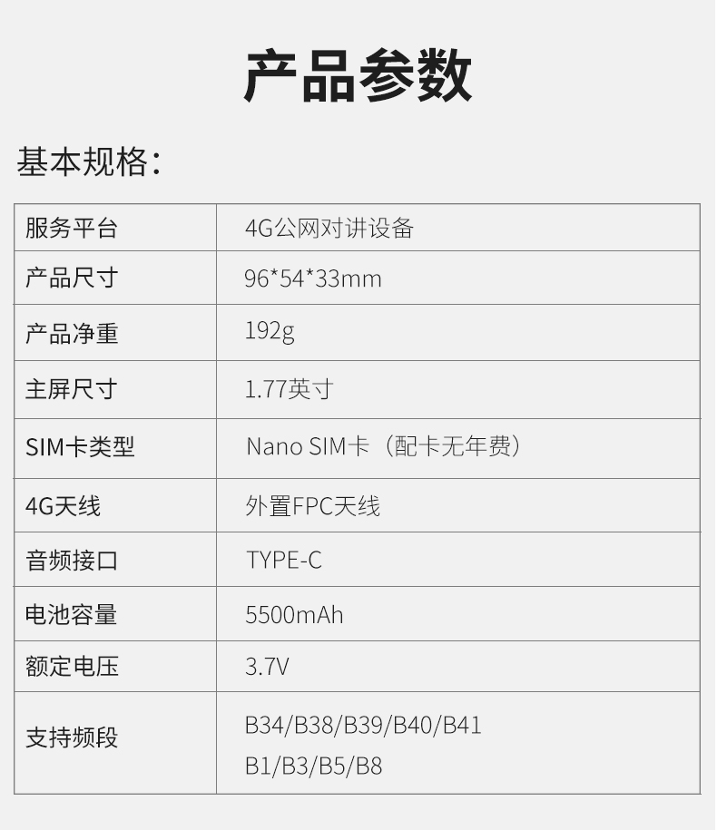 | 包装清单 | 对讲机*1,说明书*1,充电器*1 |